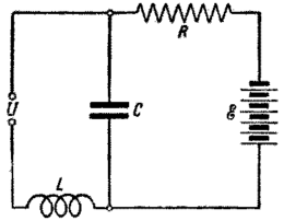 5. Благодаря тому, что дуга имеет падающую характеристику, она может быть использована в качестве генератора незатуха-ющих колебаний. Схема такого дугового генератора представ-лена на рис. 7. Условия генерации колебаний в этой