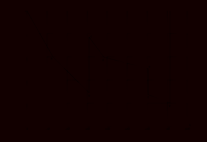 о оси X откладывается сопротивление участка, по оси Y потенциал соответствующей точки.