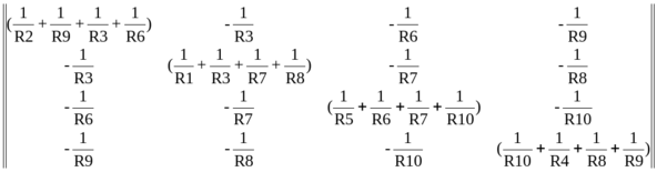 По методу узловых потенциалов мы имеем уравнение в матричном виде: