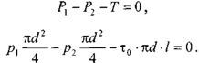 Поскольку в начальный момент времени силы трения будут возникать только у стенок трубы, то уравнения равновесия можно запмсать в следующем виде: