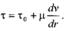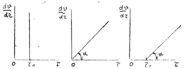 Для определения закона распределения скоростей по сечению потока при структурном режиме движения жидкости запишем некоторую функцию для касательных напряжений в соответствии с