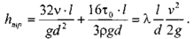Для расчёта трубопроводов при ждижении по ним глинистых и цементных растворов можно пользоваться формулой Б.И. Мительмана: