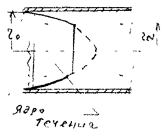 чения, где жидкость движется, сохраняя прежнюю свою структуру, т.е. как твёрдое тело. Размеры центрального ядра течения (радиус
