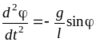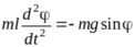 Рассмотрим движение плоского математического маятника по окружности радиуса l с центром в точке О (рис. 1). Будем определять положение точки М (маятника) углом отклонения j радиуса ОМ от вертикали. Направляя касательную Mt в сторону положительного отсчёта угла j, составим естественное уравнение движения. Это уравнение образуется из уравнения движения