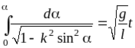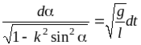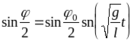 , то, переходя в равенстве (23) от a к j с помощью формулы (18), найдём закон движения маятника, выраженный эллиптическую функцию sn, в виде