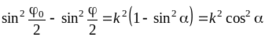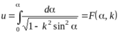 Интеграл, стоящий в левой части равенства (20), представляет собой эллиптический интеграл первого рода. Величина k называется модулем эллиптического интеграла. Этот интеграл есть функция верхнего предела и модуля, т.е.
