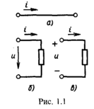 Условное графическое обозначение резистивного элемента Представлено на рис. 1.2, а, где указаны принятые положительные направления напряжения и тока.