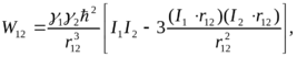 Энергия диполь-дипольного взаимодействия двух магнитных моментов 1=1ћI1 и 2=2ћI2 описывается хорошо известным выражением