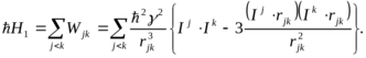Wii' = {ii' — 3[iz cos + sin (ix cos + iy sin )]x[i'z cos + sin (i'x cos y + +i'ysin)]}2ħ2/r3 = {ii' — 3[iz cos + sin (i+ e- i + i- ei)/2]x[i'z cos + sin (i+e- i+ + i-ei)/2)]}2ħ2/r3 = (A+B+C+D+E+F)2ħ2/r3, (17)
