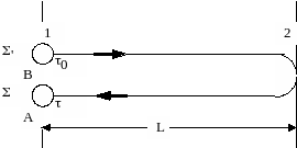 Если время, требуемое на изменение скорости часов В на обратную, достаточно мало по сравнению с временем прямолинейного и равномерного движения от точки 1 до точки 2, то время t, отмеренное часами А, и время