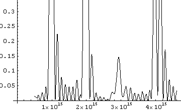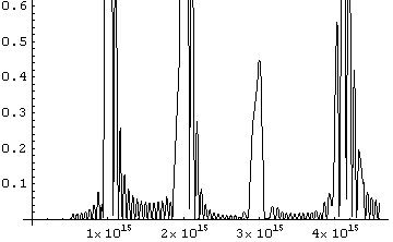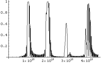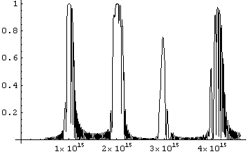 Так выглядит частотный профиль отражения бинарной квазипериодической решетки при пятидесяти шести слоях в структуре. Дальнейшее увеличение числа слоев практически не изменяет пики отражения. Это видно, например, из графиков № 36 и № 37.