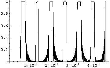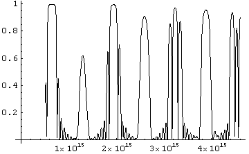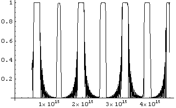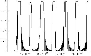 При псевдогауссовой модуляции появляется довольно беспорядочный набор узких пиков, чередующихся с сильно возмущенными зонами, с коэффициентом отражения от 0.2 до 0.7. И вся эта картинка «плавает» и диспергирует в зависимости от угла падения излучения. Приводить ее здесь не будем. Сейчас перейдем непосредственно к бинарным структурам, промодулированным с помощью функции Гаусса exp(-x2/2), где параметр = L/4. Здесь L – ширина всей структуры.