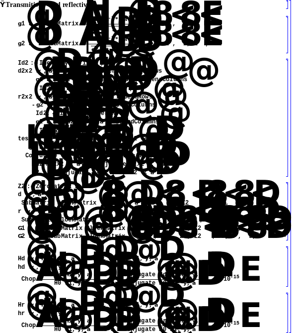 В следующем блоке (приведенном ниже) происходит вычисление характеристической матрицы для одного слоя решетки.