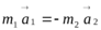 При любом взаимодействии двух тел отношение модулей приобретенных ускорений постоянно и равно обратному отношению масс. Т.к. при взаимодействии тел векторы ускорений имеют противоположное направление, можно записать, что