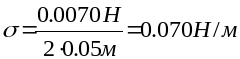 Расчет показывает, что параметры капиллярных волн связаны с коэффициентом поверхностного натяжения следующим уравнением: