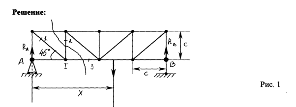 Этим методом удобно пользоваться для определения усилий в отдельных стержнях фермы, например, для проверочных расчетов (рис. 4)