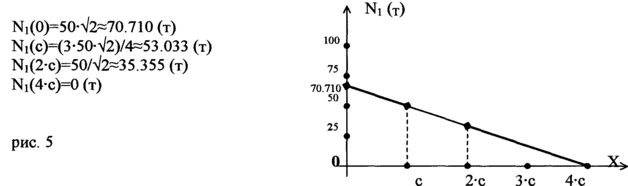 наиболее опасно положение груза при х= 0, тогда абсолютное значение усилия N1(0)70.710 (т), а S1 =70710 (кг) / 1600 (кг/см2) 44.194 см2