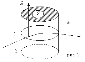 Рассмотрим бесконечно малый объём в виде цилиндра с высотой h и площадью основания S, расположенный в средах 1 и 2 (рис. 2).