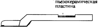 Вкладыш - держатель кантилевера (Рис.9) содержит пьезокерамическую пластинку, вибрации которой передаются кантилеверу и возбуждают его колебания на требуемой частоте, которая во всех разновидностях этого метода выбирается в пределах одного из резонансных пиков на амплитудно-частотной характеристике (АЧХ).