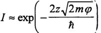 В приближении простейшей одномерной модели туннелирования электрона через прямоугольный потенциальный барьер высотой Fi, зависимость туннельного тока I от ширины барьера z выражается экспоненциальным множителем