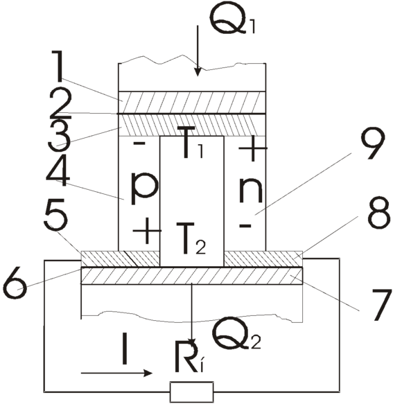 Рис. 1. Принципиальная схема элементарного полупроводникового ТЭГ