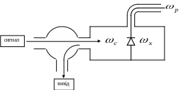 хема була б “найбільш” мікроелектронною, якби можна було використати власні частоти діода. Спробуємо зробити це: розглянемо еквівалентну схему (див. Мал.):