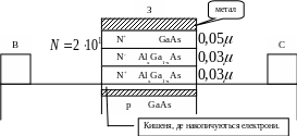 ольові транзистори на гетеропереходах. Оскільки різниця між рівнями не змінюється, бо це атомні рівні, то маємо розриви на переході: електрони накопичуються в ямі А.