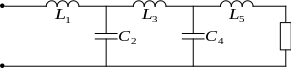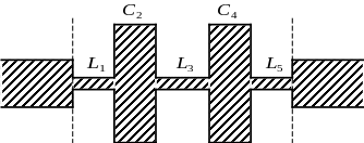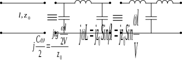 і є індуктивністю, широка коротка лінія представляє собою ємність. Тоді вихідну схему можна представити як: