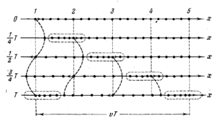 Частицы среды, в которой распространяется волна, не вовлекаются волной в поступательное движение, они лишь совершают колебания около своих положений равновесия. В зависимости от направления колебаний частиц по отношению к направлению, в котором распространяется волна, различают продольные и поперечные волны. В продольной волне частицы среды колеблются вдоль направления распространения волны. В поперечной волне частицы среды колеблются в направлениях, перпендикулярных к направлению распространения волны. Упругие поперечные волны могут возникнуть лишь в среде, обладающей сопротивлением сдвигу. Поэтому в жидкой и газообразной средах возможно возникновение только продольных волн. В твердой среде возможно возникновение как продольных, так и поперечных волн.