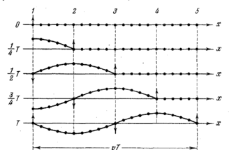 где υ — скорость волны, T — период колебаний. Длину волны можно определить также как расстояние между ближайшими точками среды, колеблющимися с разностью фаз, равной 2 (см. рис. 1.3).