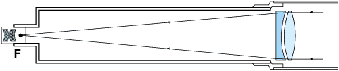 Таким образом, телескоп можно изготовить, расположив на одной оси одна за другой две линзы - объектив и окуляр. Для наблюдений близких земных предметов суммарное расстояние фокусов должно быть увеличено.Меняя окуляры, можно получить различные увеличения при одном и том же объективе.