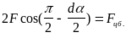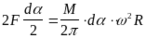 Рассмотрение проведем в неинерциальной системе отсчета, вращающейся вместе с обручем с угловой скоростью w, в которой обруч покоится. В этой системе любая малая часть обруча тоже покоится. Рассмотрим бесконечно малый элемент обруча, стягиваемый центральным углом da. Кроме реальных физических сил, действующих на этот элемент обруча (к которым относятся силы F, действующие со