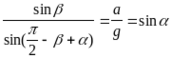 Жидкость в прямоугольном сосуде как бы находится в однородном поле новых сил тяжести, имеющих ускорение g’, которое составляет некоторый угол b с вертикалью. Следовательно, свободная поверхность жидкости в скатывающемся сосуде, перпендикулярная направлению нового ускорения g’, будет составлять такой же угол b с горизонтальной плоскостью. Найдем угол b. Имеем косоугольный треугольник
