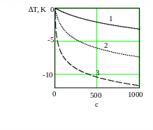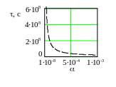 На рис. 12. приведена зависимость времени установления температуры от коэффициента барической сжимаемости.