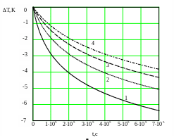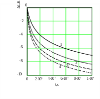 На рис. 1. приведены результаты расчетов величины баротермического эффекта от времени при различных барических сжимаемостях. В расчетах принято: ε=-0.5∙10-5