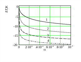 | Рис. 11 Зависимость стационарной температуры от коэффициента барической сжимаемости. |