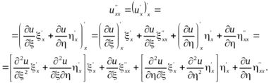 Это записано на основании правила дифференцирования сложной функции от двух переменных (здесь u зависит от и , которые, в свою очередь, зависят от x и у). Для того чтобы выразить