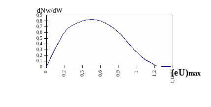 где dNW -число электронов с энергиями в интервале от W до W+dW.Анодный ток Ia, таким образом, пропорционален числу электронов, энергии которых превращают величинуW1=eUa. Кривая, выражающая связь между энергией W1 и числом частиц, имеющих энергию, превышающую W1, называется интегральной кривой распределения, Чтобы получить обычную кривую распределения, нужно продифференцировать графически интегральную кривую распределения. Это сделано на рис.5