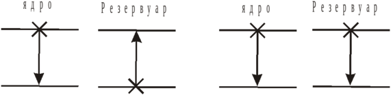 1 отсутствует). Для термического перехода, помимо взаимодействия системы спинов ядер с решеткой, требуется существование определенного энергетического состояния этой системы (решетки), при котором возможен переход. Это можно проиллюстрировать, предположив, что резервуар (решетка) имеет только два уровня энергии, расстояние между которыми точно такое же, как и у ядерной системы.