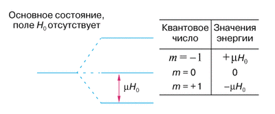 Рис.6. Зеемановское расщепление уровней энергии ядра в магнитном поле.