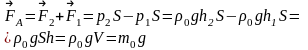 т.е. силы, выталкивающая погруженное в жидкость (газ) тело, равна весу жидкости (газа), вытесненной телом. Архимедова сила направлена противоположно силе тяжести, поэтому при взвешивании в жидкости вес тела меньше, чем в вакууме. На тело, находящееся в жидкости, действует сила тяжести и архимедова сила. Если сила тяжести по модулю больше – тело тонет, меньше – всплывает, равны – может находиться в равновесии на любой глубине. Эти отношения сил равны отношениям плотностей тела и жидкости (газа). На воде держатся громадные речные и морские суда, изготовленные из сьтали, плотность которой почти в 8 раз больше плотности воды. Объясняется это тем, что из сьтали делают лишь сравнитльтно тонкий корпус судна, а большая часть его объёма занята воздухом. Среденее значение плотности судна при этом оказывается значительно меньше плотности воды, поэтому оно не только не тонет, но и может перевозить болшое количество грузоав.