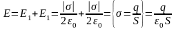 Конденсатор – система из двух проводников, разделенных слоем диэлектрика, толщина которого мала по сравнению с размерами проводников. Между пластинами напряженность поля равна удвоенной напряженности каждой из пластин, вне пластин она равна нулю. Физическая величина, равная отношению заряда одной из пластин к напряжению между обкладками называется электроемкостью конденсатора