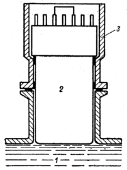Лучше применять светопроводы с большим радиусом кривизны. Светопроводы позволяют также сочленять сцинтилляторы и ФЭУ разных диаметров. При этом используются конусообразные светопроводы. Сочленение ФЭУ с жидким сцинтиллятором производится либо через светопровод, либо непосредственным контактом с жидкостью. На рис.6 приведен пример сочленения ФЭУ с жидким сцинтиллятором. В различных режимах работы на ФЭУ подается напряжение от 1000 до 2500в. Так как коэффициент усиления ФЭУ очень резко зависит от напряжения, то источник питающего тока должен быть хорошо стабилизирован. Кроме того, возможно осуществление самостабилизации.