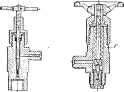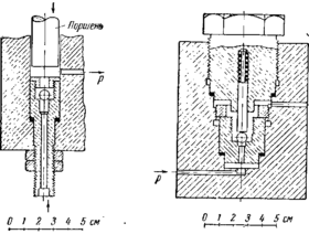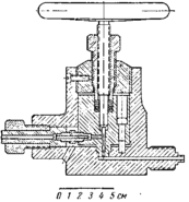 Вентили применяются в аппаратах высокого давления, если необходимо перекрыть часть аппаратуры. Если для получения высоких давлений пользуются жидкостью, то до давлений в несколько сотен атмосфер можно применять вентили следующих конструкций.