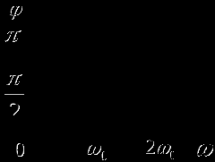 незалежно від значення коефіцієнта затухання β, φ = π/2, тобто сила випереджає по фазі коливання на π/2. При подальшому збільшенні ω зсув фаз зростає і при