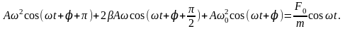 Через деякий час t1, завдяки дії вимушеної сили F0, амплітуда коливань досягне максимального значення (рис. 1). З цього моменту часу розв’язком рівняння (2) буде лише функція