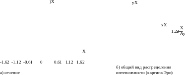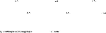 Аберрации разных типов по-разному влияют на вид пятна рассеяния (картину Эри). В случае симметричных аберраций (расфокусировка, сферическая) сохраняется радиальная симметрия пятна (рис. 8а). В случае несимметричных аберраций (кома, астигматизм) симметрия пятна нарушается (рис. 8б, рис. 8в).