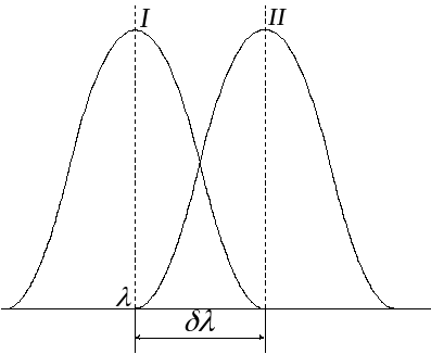 – мінімальна різниця довжин хвиль двох сусідніх спектральних ліній, при якій ці лінії спостерігаються роздільно, якщо виконується умова Релея. Згідно з умовою Релея дві спектральні лінії будуть видимі роздільно у випадку, коли мінімум другої спектральної лінії знаходиться не ближче максимуму першої лінії (рис.6).
