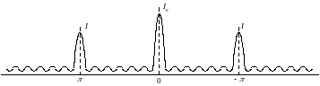 б) Побічні максимуми дифракції можна одержати, якщо чисельник у формулі (24) досягає максимуму. Це можливо за умови, коли
