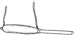 Однако, поскольку можно было бы предположить, что во всех предыдущих опытах, описанных в этой главе, мгновенный индуцированный ток возбуждался благодаря некоторому особому действию, имевшему место во время образования магнита, а не благодаря самому факту его приближения, то был произведен следующий опыт. Все тождественные концы составной полой спирали были соединены вместе медной проволокой, и образованные таким образом два главных вывода были связаны с гальванометром. Цилиндр из мягкого железа был заменен цилиндрическим магнитом в три четверти дюйма диаметром и в восемь с половиной дюймов длиной. Один конец этого магнита был введен внутрь спирали по ее оси (рис. 4), а затем, после того как стрелка гальванометра успокоилась, магнит был быстро вдвинут внутрь спирали; стрелка немедленно отклонялась в таком направлении, как если бы магнит был образован посредством одного из двух предыдущих процессов. При оставлении магнита внутри стрелка возвращалась в свое первоначальное положение, а при вытаскивании его отклонялась в противоположном направлении. Действия эти не были особенно сильны; однако, вдвигая и выдвигая магнит таким образом, чтобы каждый последующий толчок прибавлялся к произведенным уже ранее, удавалось сообщить стрелке колебания размахом в 180° и более.